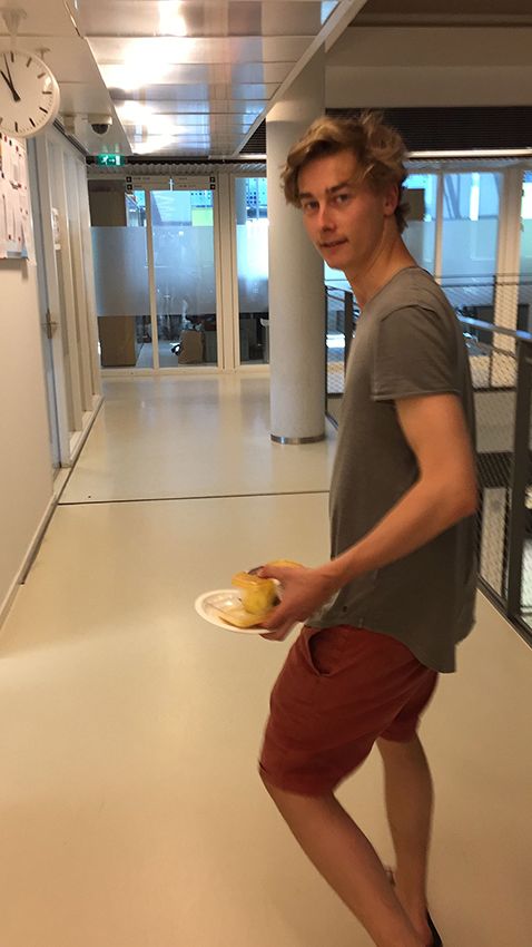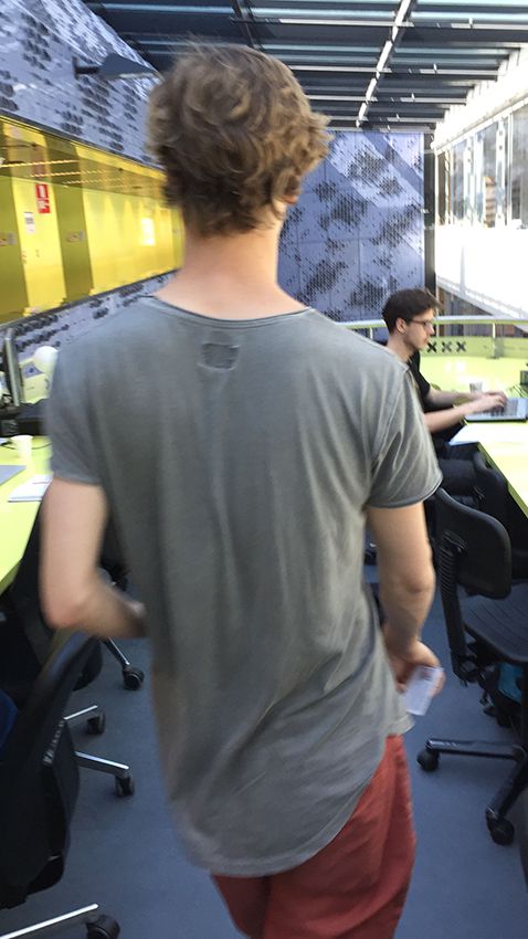 Links, Rechts, Rechts en dan Links. Quint leidt de weg vanuit de lift op Science Park (SP) naar de groene "zwevende" balkons waar alleen master studenten mogen zitten die aan hun scriptie werken. Toevallig waren we dat ook allebei anders zijn er genoeg mensen die een oogje in het zeil houden. Je zou kunnen stellen dat iedereen wel eventjes zou willen zweven.