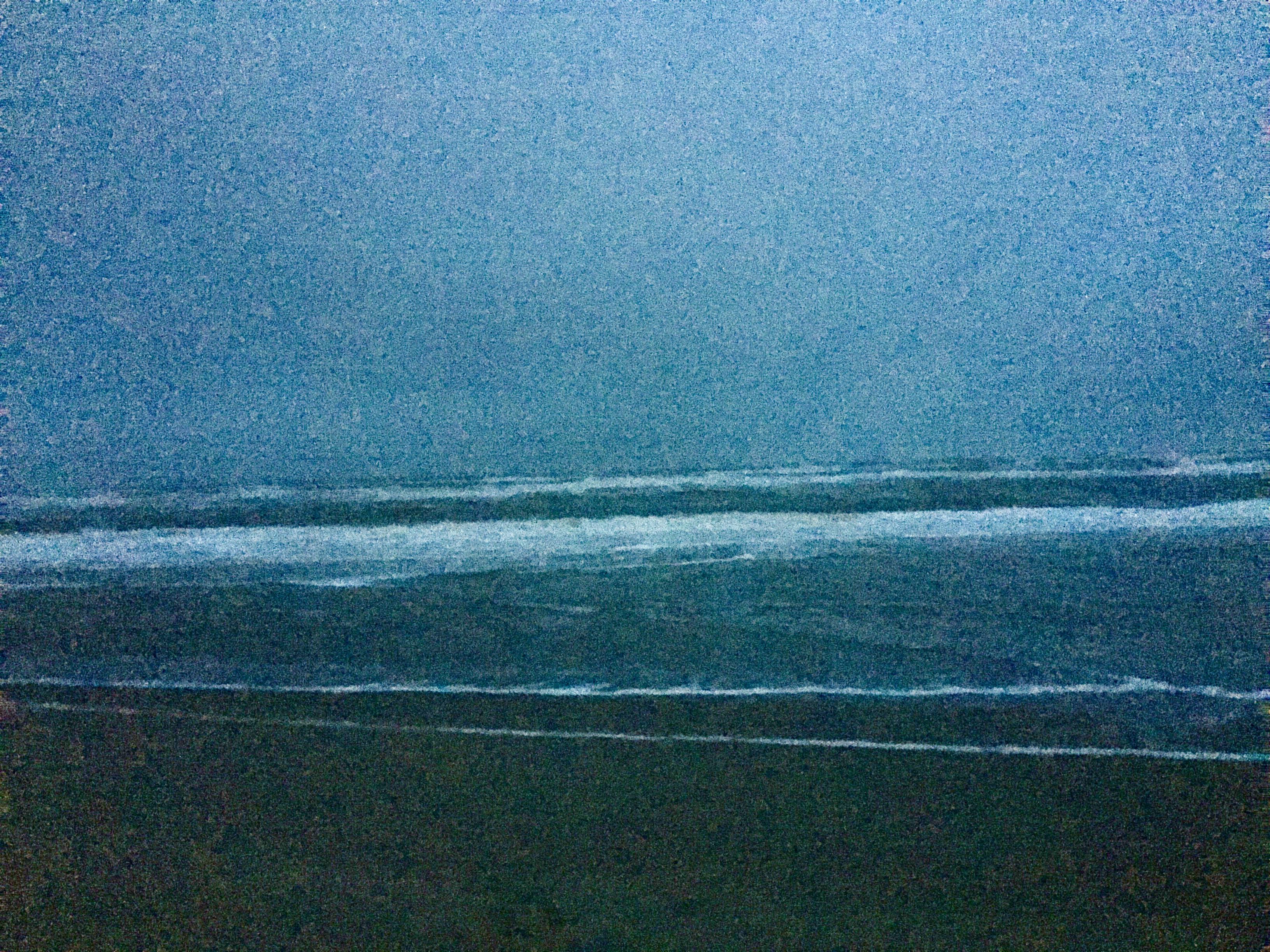 Nog net in het oude jaar. Daar op het strand daar liep een verdwaald paar. In een storm 's avonds laat. Foto's maken kon geen kwaad. Omringd door de blauwe zee, het gele strand en ergens in de verte, iets wat leek op een fata morgana, onzez reddende hand.