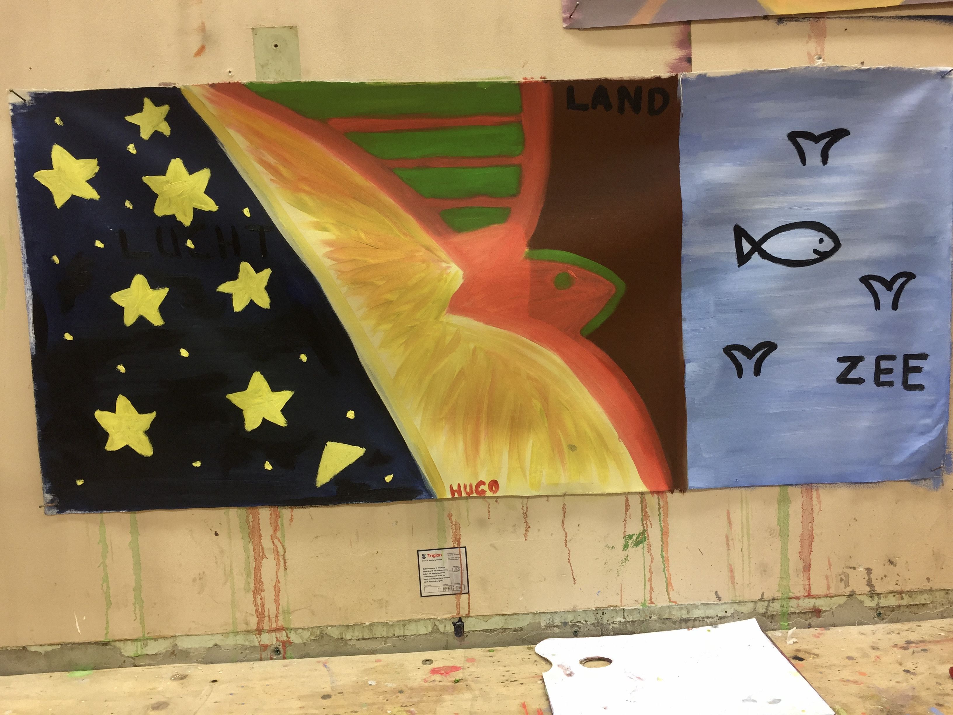 De overgebleven resten verf aan de muur - mijn schilderhoekje!