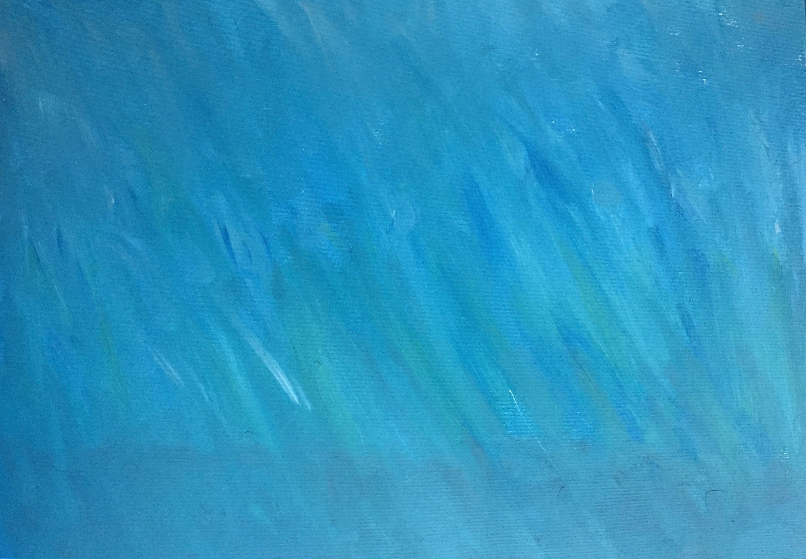 Tijdens een nogal regenachtige periode werd ik wakker en bedacht mij hoe mooi het kan zijn om vallende regen te schilderen. Hoe moet dat eigenlijk? Ik had geen idee, maar besloot het wel vrolijk te houden. Regen wordt vaak toebedicht als een scherm, waardoor je minder kan zien. Hiernaast is ook dat 'scherm' goed toegebracht en valt er erachter nogal weinig te zien. Wellicht viel het je niet op als regen in de eerste zin, maar uiteindelijk is regen moeilijk af te beelden en is dit hiervan mijn impressie.